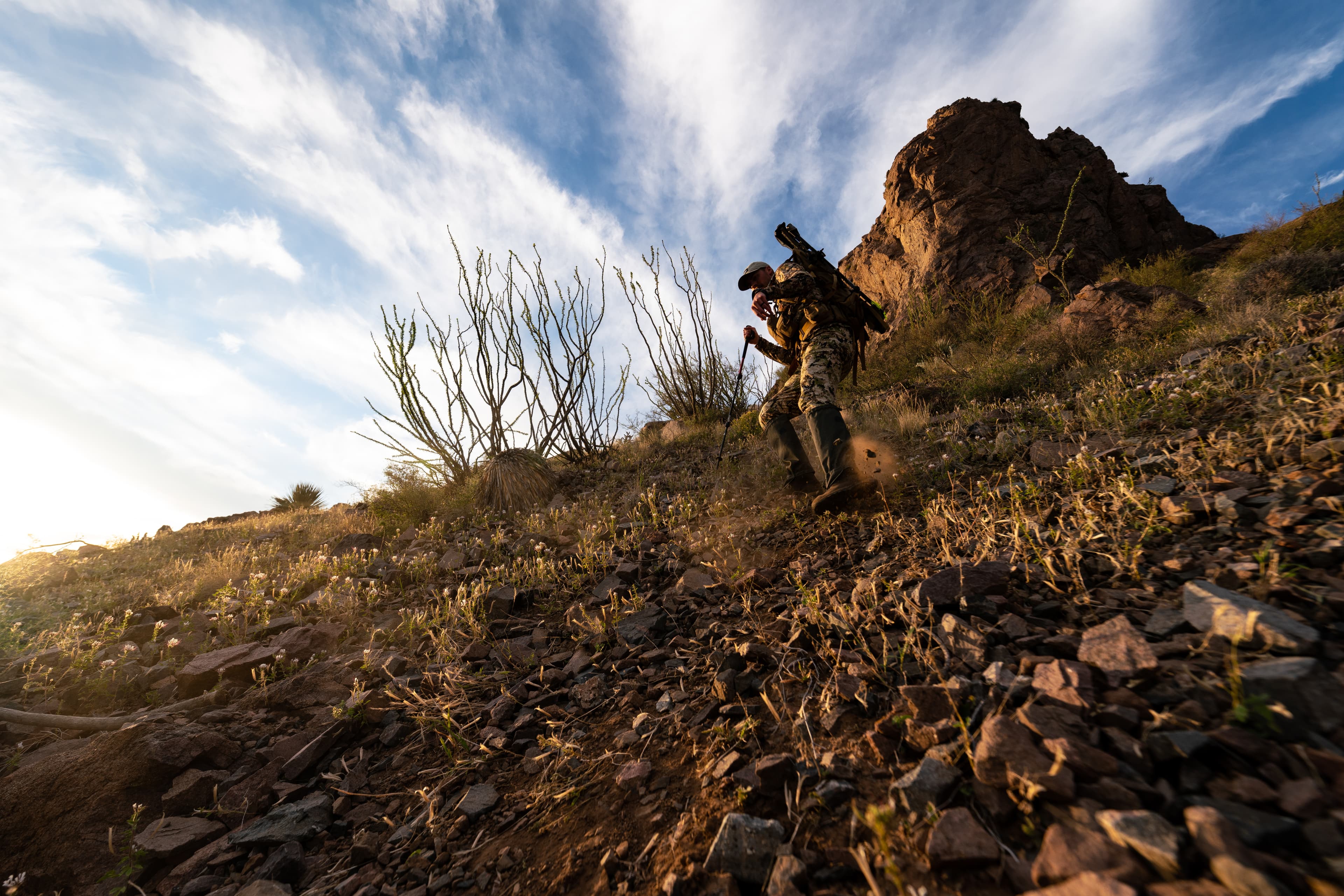 The intense heat of early season can keep you sweating even when camped in the shade. The Ascent Collection is built to keep you active and comfortable in these conditions. The specialized fabric creates an evaporative cooling effect while striking a perfect balance between breathability and stout fabrics. Plus knee pad pockets for when the hike or stalk gets scrappy. When the sun is blazing, reach for the Ascent and hunt hard without worrying about rips and tears.