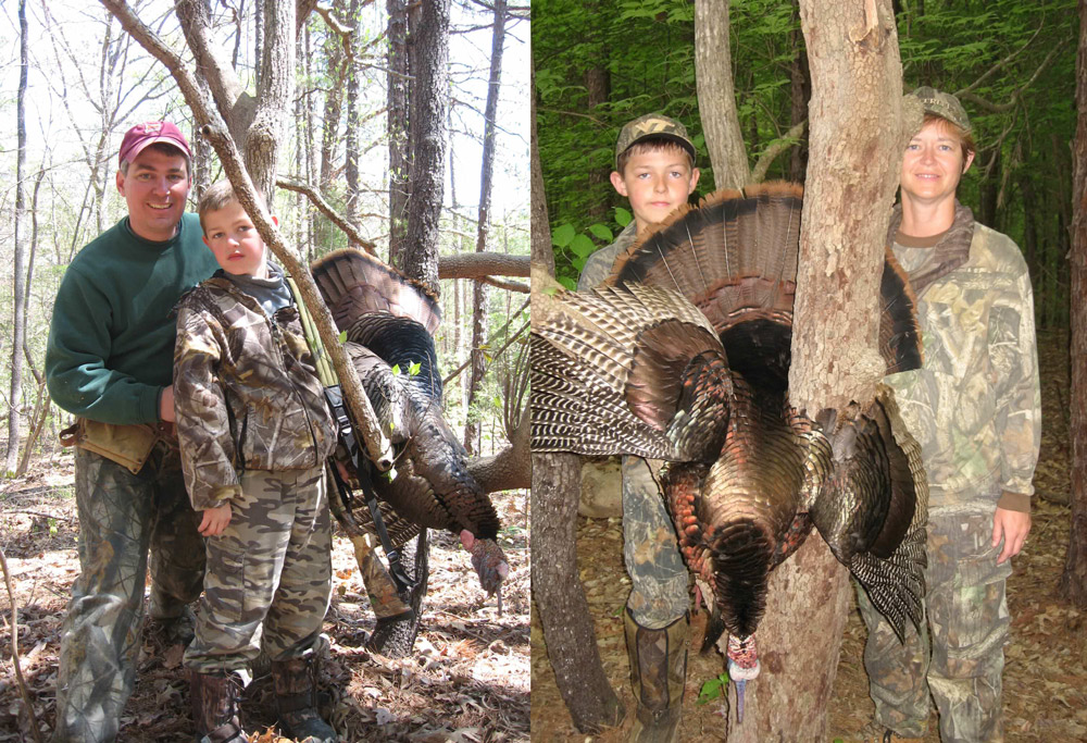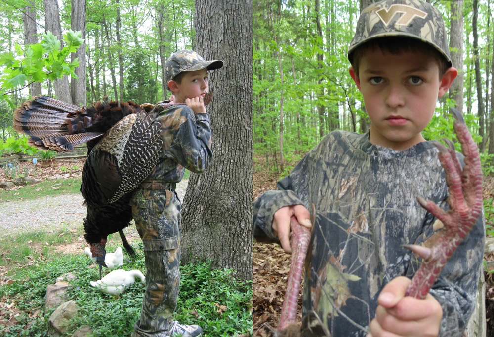 (Left, Chase and his dad, Todd Grubbs pictured with his first turkey, age 7)