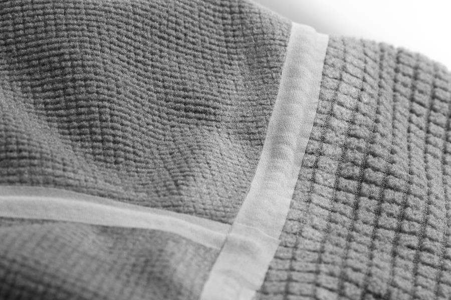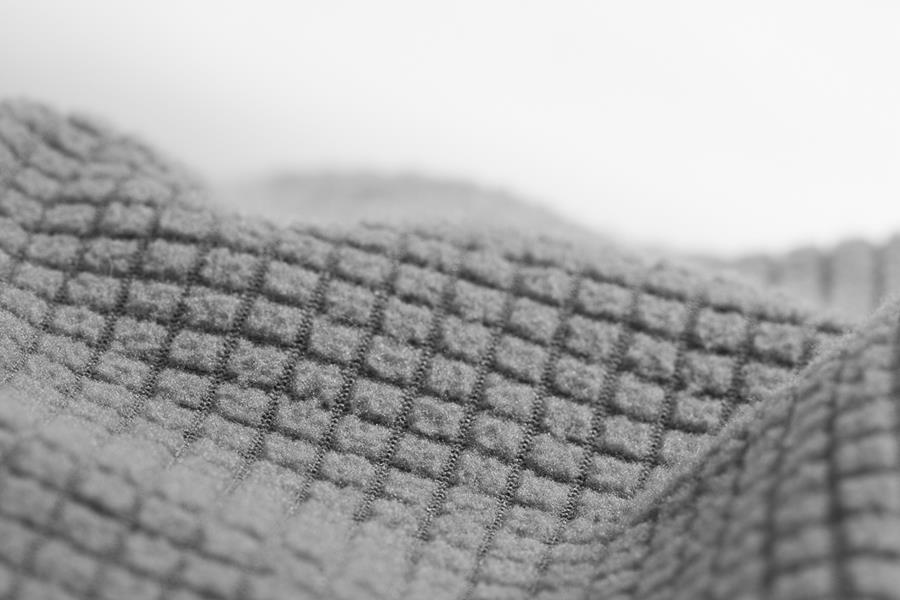 EG: The face textile is a 55-denier tightly woven polyester stretch. By adjusting the weave, we actually made it significantly more wind resistant as its immediate predecessor. Bonded to the face is a 100% polyester microfleece backer, split up into two different types, which was really the breakthrough. Varying the loft and open space of the backers gives the ability to vary temperature regulation. On the front of the torso, a denser, heavier fleece grid is used to maintain warmth in your core. Where a backpack will contact the back, and in the sleeves where less warmth is needed, we use a smaller gridded fleece. Both backers trap air to insulate, but equally as important, the grid patterns help effectively moderate your body temperature by channeling warm air away from the heat source. Essentially, this piece is fine-tuned for an active hunt, letting your body breathe and stay warm.