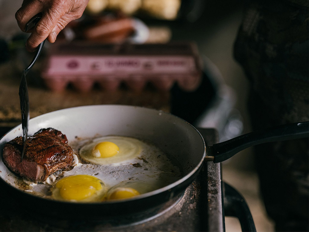 When Ira says cook, he means cook. His favorite meal to have fresh off the blind’s four burner stove is pepper jack boudin, a Cajun dish of rice and pork sausage. The more traditional breakfast of bacon and eggs is a crowd favorite too.