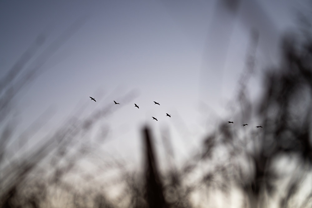 “They see really well,” he says, “and it’s really satisfying learning how to trick them consistently. It’s more gratifying than decoying a duck or a goose. Decoying a crane is different. You have to give extra attention to hiding. They’re a little more methodical how they approach the decoys. They’re not looking for something happy. They’re looking for something wrong. They don’t just come bombard decoys with reckless abandon like ducks do.”