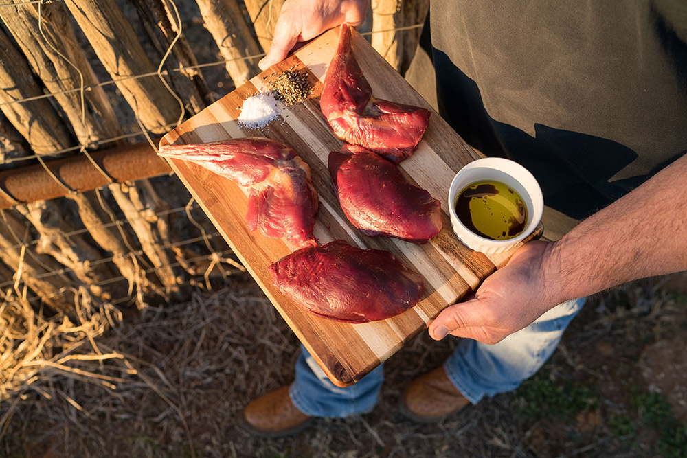 Because crane is so lean, Dusty says it’s vital to use olive oil to help conduct heat without drying out the meat during grilling. The grill should be very hot for a good sear.
