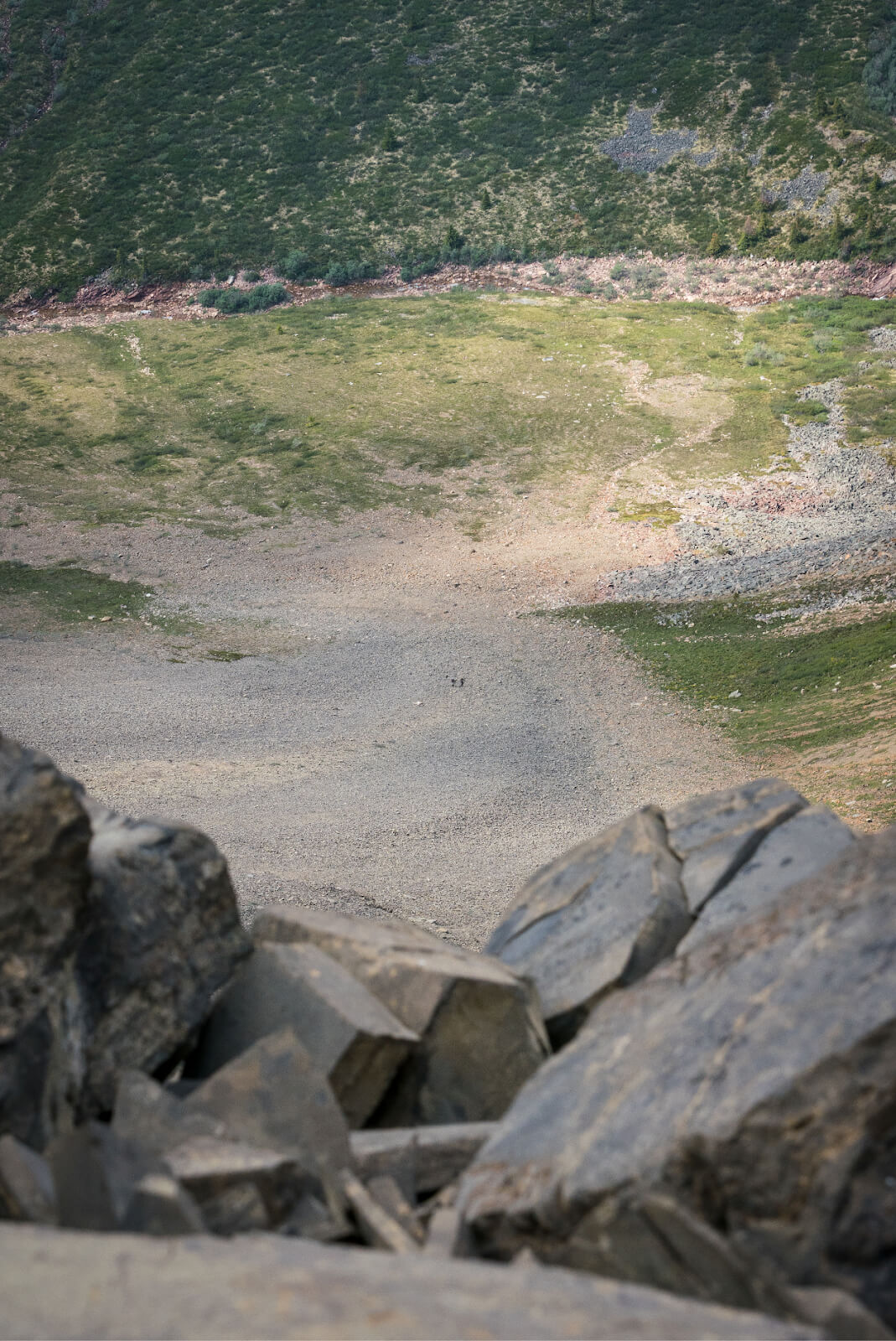 The ram didn’t move. The team passed time drawing on shale rocks, keeping track of the time in the endless sunshine. 2 a.m. 3 a.m. 4 a.m. Then, finally, the ram moved to the green patch, but the wind was bad. “It’s hard to wait like that, then when the sheep is in the perfect spot but the conditions aren’t right, it's hard to stay tight, to continue to wait, but we had time,” Roe says. After his meal of green grass, the sheep went back to the scree slope.