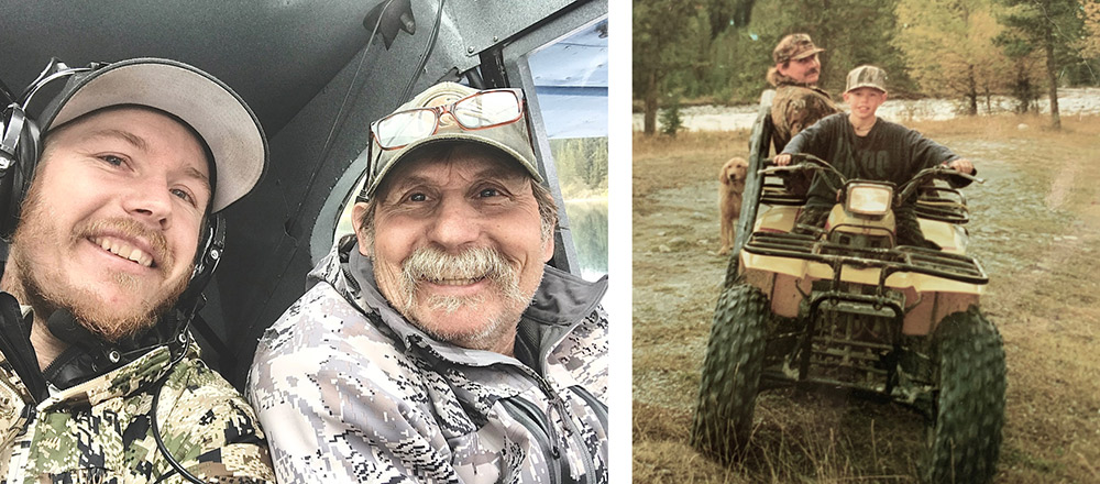 On the right: Dustin and his dad, heading into the bush to do what they both love.