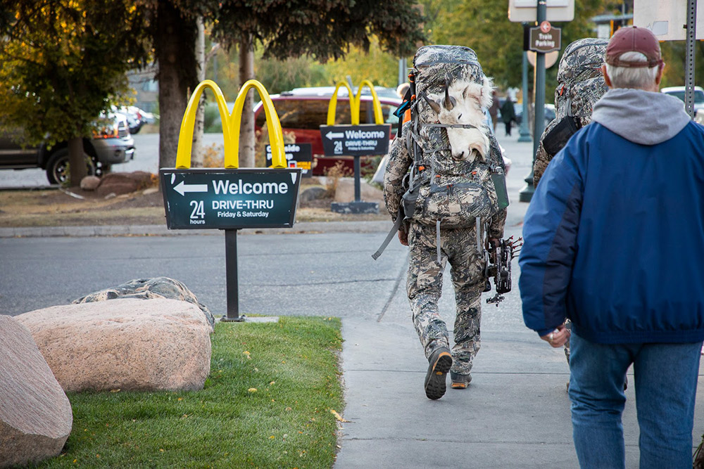 Packing the goat out on the train, he felt self-conscious about the reaction he might receive from non-hunters—people on a scenic train ride viewing the high alpine from a comfortably distant train car might be judgemental of someone wearing hunting gear and carrying a bow, he thought, or packing an animal on the way out. People might be so disconnected from their food that they don’t understand someone who took to the wilderness to get front and center with that food source. But he was pleasantly surprised. People asked where they’d been and how long they’d been up there. “Everybody on the train was actually very welcoming,” he says. “We never got a negative comment. Everybody was really curious about what we were doing.”