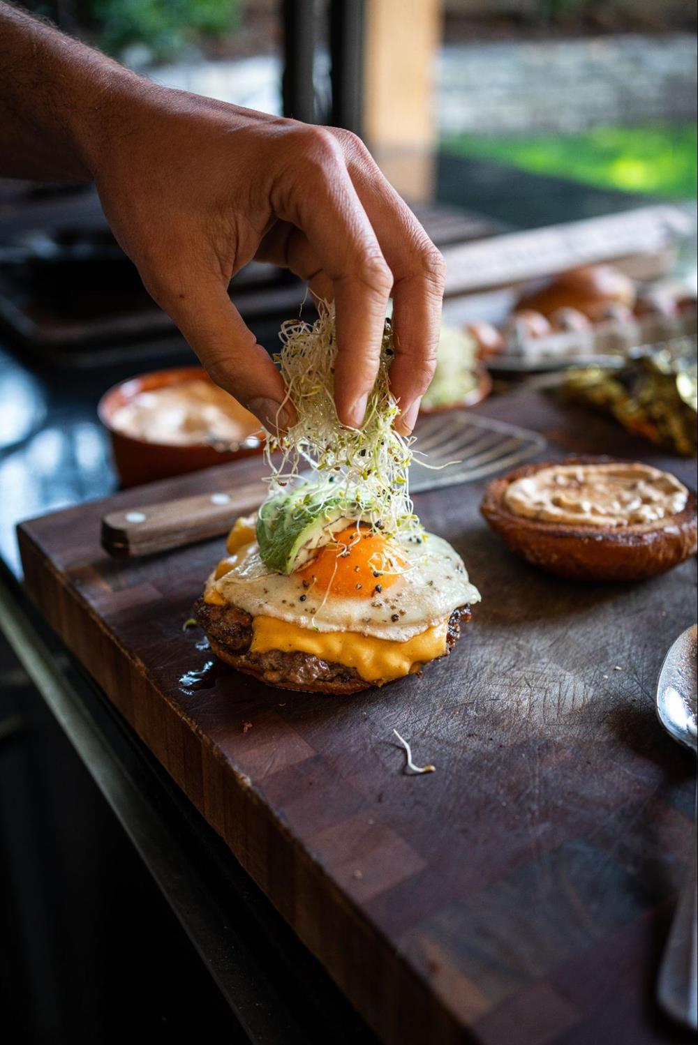 Alongside the buns, season and cook your eggs in butter to you preferred doneness.